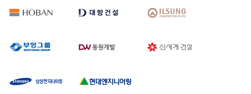 호반건설, 대방건설, 일성건설, 부영건설, 동원개발, 삼성엔지니어링, 현대엔지니어링, 신세계건설 협력업체 등록